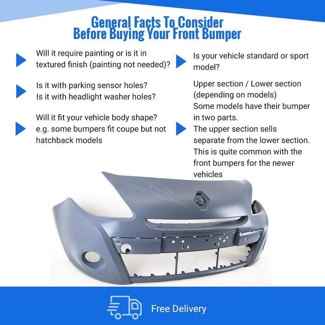 Renault Clio 2009-2012 Front Bumper 15In Wheel Cars Primed No Pdc Or Washer Holes