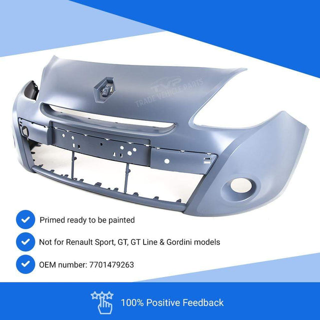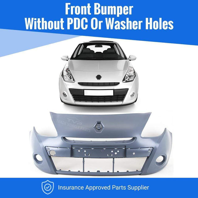 Fits Renault Clio 2009-2012 Front Bumper 15In Wheel Cars Primed No Pdc Or Washer Holes