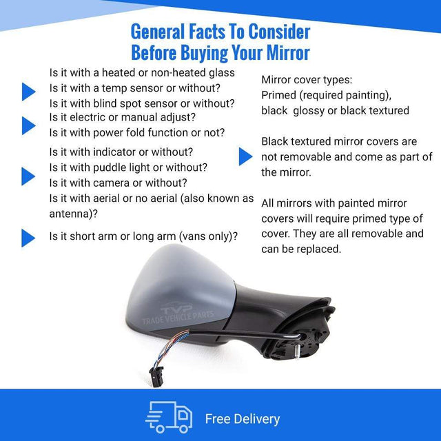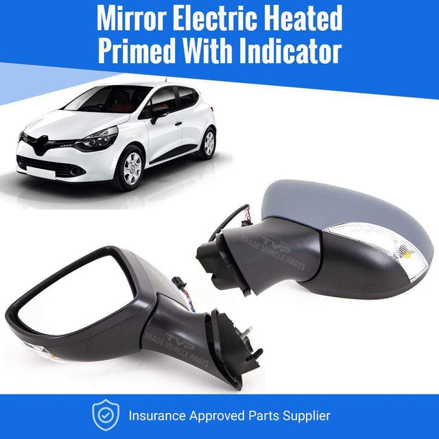 Fits Renault Clio 2013- Door Wing Mirror Electric Heated Primed With Indicator Passenger Side