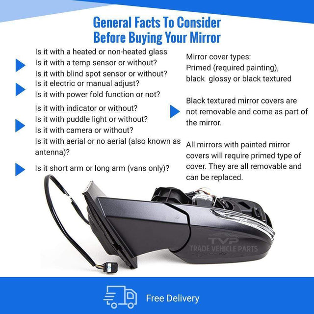 Fits Renault Kadjar 2015-2018 Door Wing Mirror Electric Heated Manual Fold With Indicator 7 Pin With Primed Cover Passenger Side