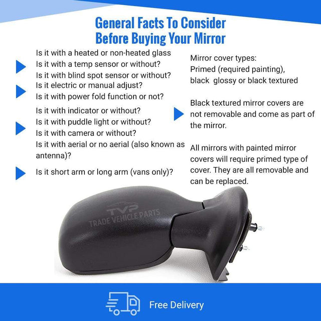 Fits Renault Kangoo 2003-2009 Door Wing Mirror Electric Heated Black Driver Side