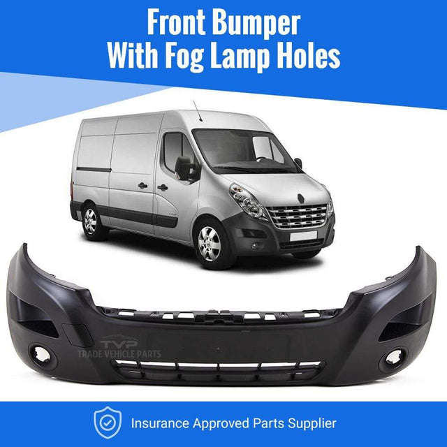 Fits Renault Master 2010- Front Bumper With Fog Lamp Hole Mat-Black