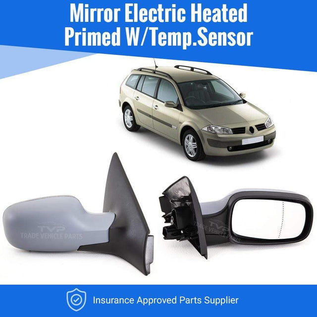 Renault Megane 2003-2009 Door Wing Mirror Heated Electric Primed T/Sensor Driver Side