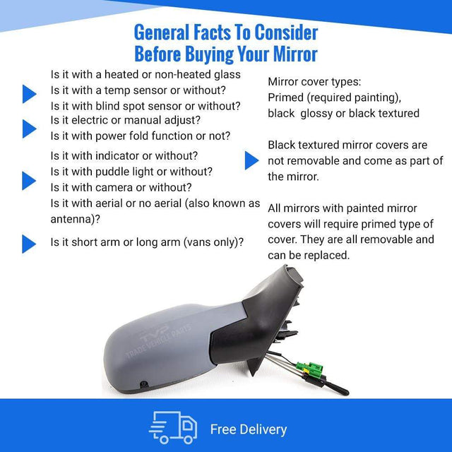 Fits Renault Megane 2003-2009 Door Wing Mirror Manual Primed T/Sensor Driver Side