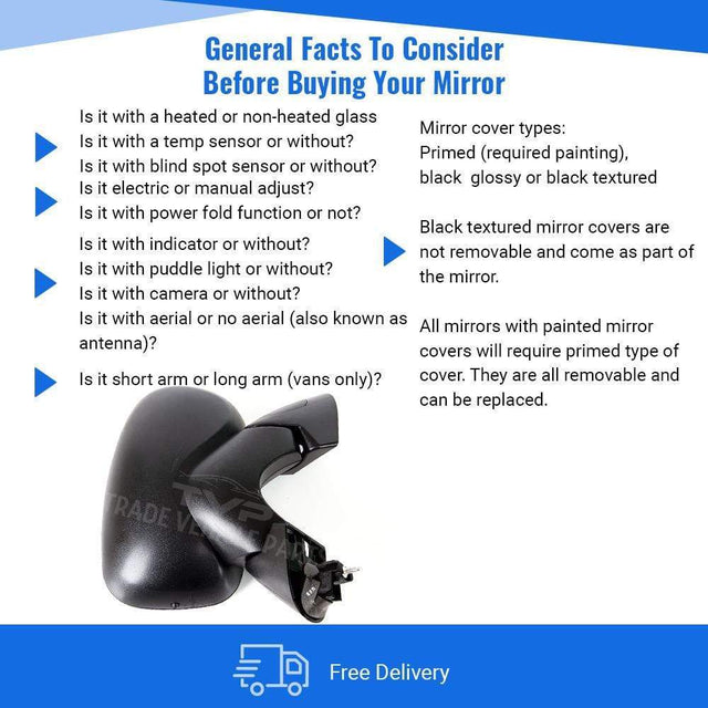 Renault Trafic 2001-2014 Door Wing Mirror Electric Heated Black Driver Side