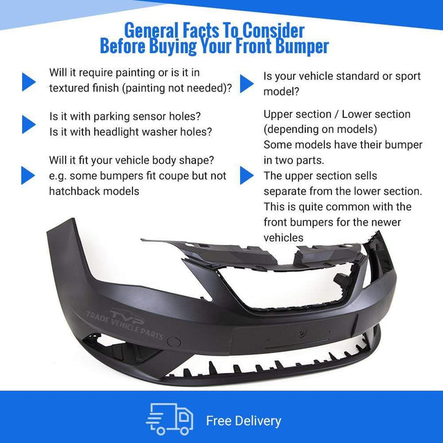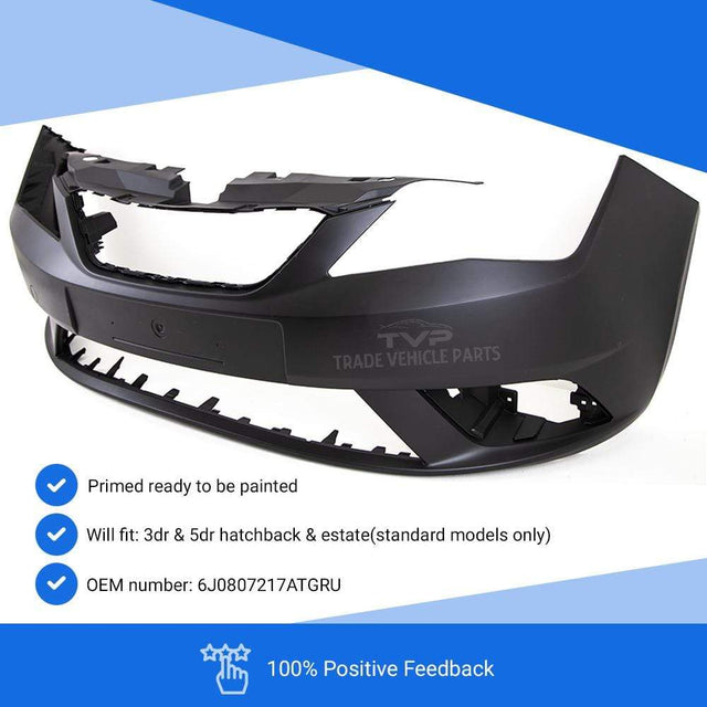 Fits Seat Ibiza 2012-2015 Front Bumper Primed With Spoiler No Sensor / Washer Holes