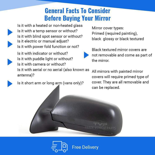 Fits Skoda Fabia 2000-2005 Door Wing Mirror Heated Electric Black Passenger Side