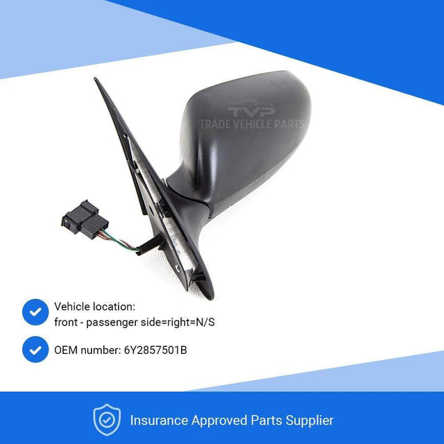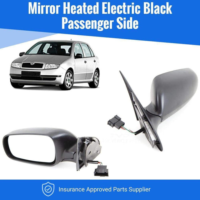 Skoda Fabia 2000-2005 Door Wing Mirror Heated Electric Black Passenger Side