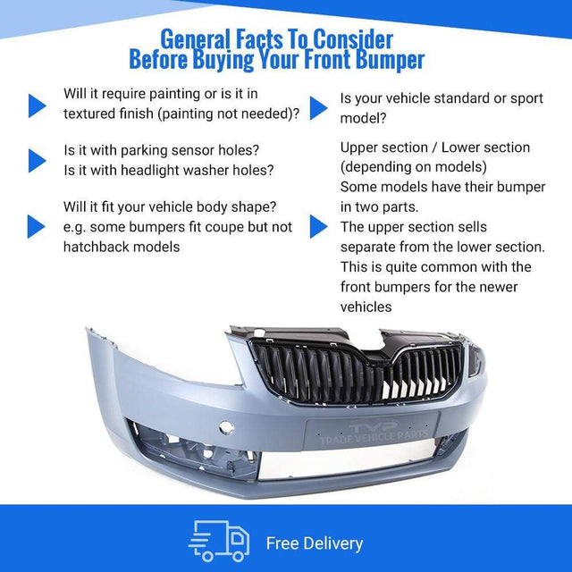 Fits Skoda Octavia 2013-2017 Front Bumper Primed W/O Washer Hole