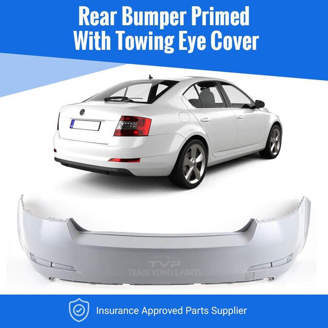 Fits Skoda Octavia 2013-2017 Rear Bumper Primed With Towing Eye Cover Saloon Models Only Not For Estate