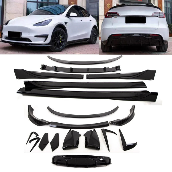 Fits Tesla Model Y Aero Body Kit Front Splitter Rear Diffuser Spoiler Side Skirts Gloss Black