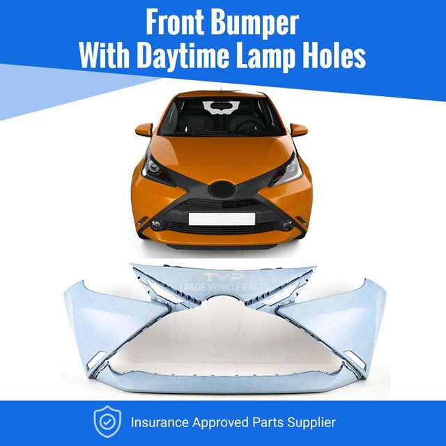 Fits Toyota Aygo 2014- Front Bumper Primed With Daytime Lamp Hole