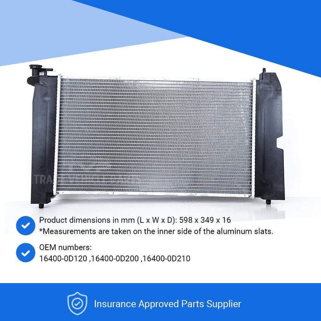 Fits Toyota Corolla 2000-2007 Radiator (1.3I 16V 1.4I 16V 1.6I 16V 1.8I 16V) (Petrol) ( Manual) (With/Without Ac)