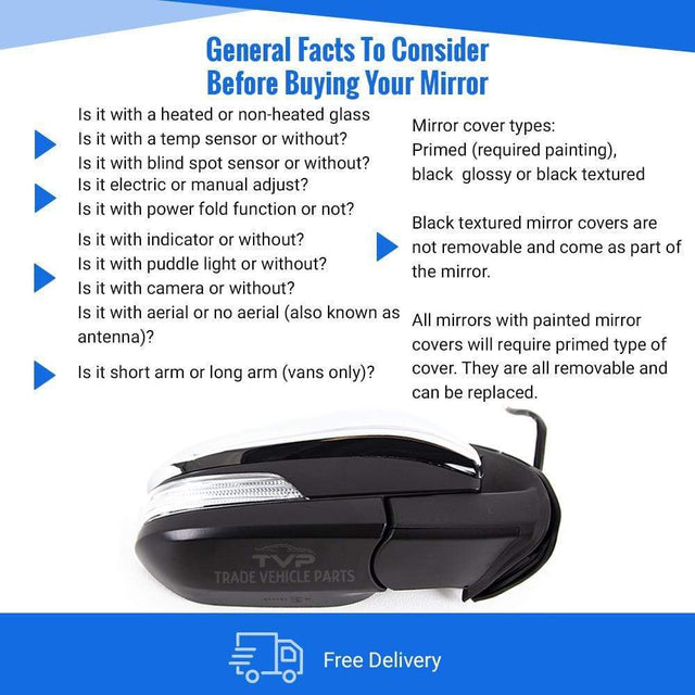 Fits Toyota Hilux 2016- Door Wing Mirror Electric W/Indicator Chrome Cover Driver Side