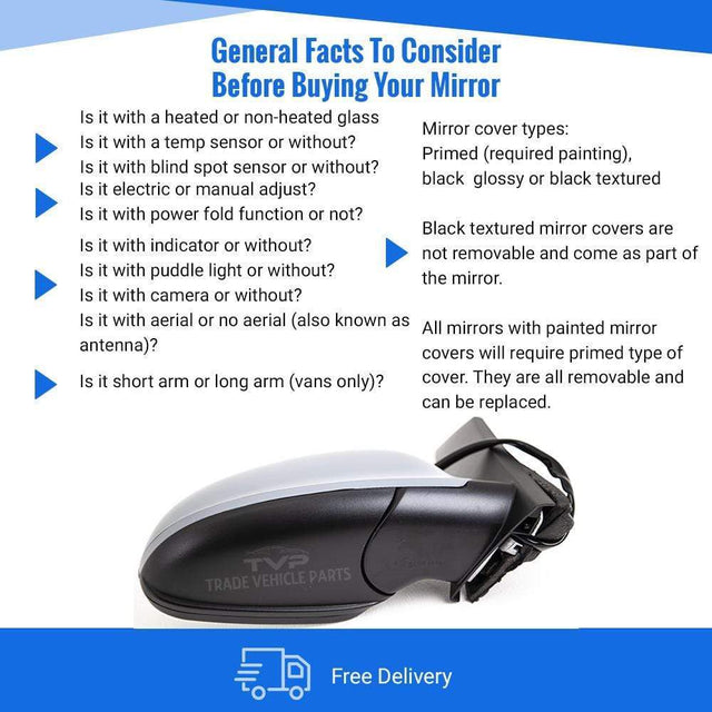 Vauxhall Astra J 2010-2015 Door Wing Mirror Electric Heated Primed Driver Side