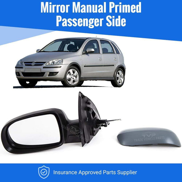 Fits Vauxhall Corsa C 2000-2006 Door Wing Mirror Manual Primed-Gray Passenger Side