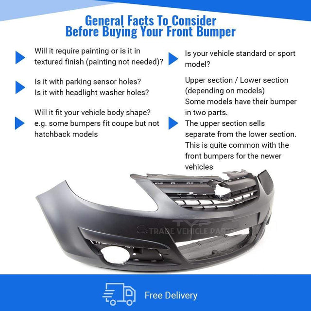 Fits Vauxhall Corsa D 3/5 Dr 2006-2011 Front Bumper Primed No PDC Or Washer Holes