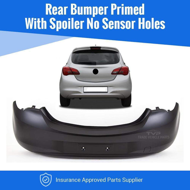 Vauxhall Corsa E 2014-2018 Rear Bumper Primed No Pdc Holes Not For SRi, VXR or Limited Edition