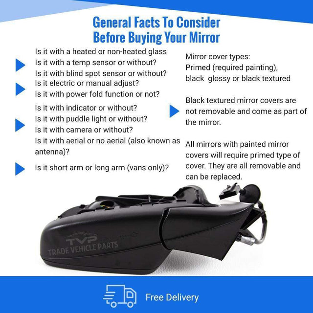 Vauxhall Zafira 2008-2014 Door Wing Mirror Electric Heated Primed Driver Side