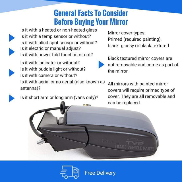 Fits Vauxhall Zafira 2008-2014 Door Wing Mirror Electric Heated Primed Passenger Side