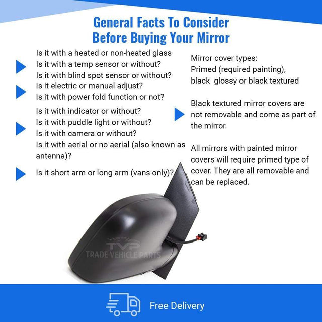 Fits VW Caddy 2004-2015 Door Wing Mirror Electric Heated Black Driver Side