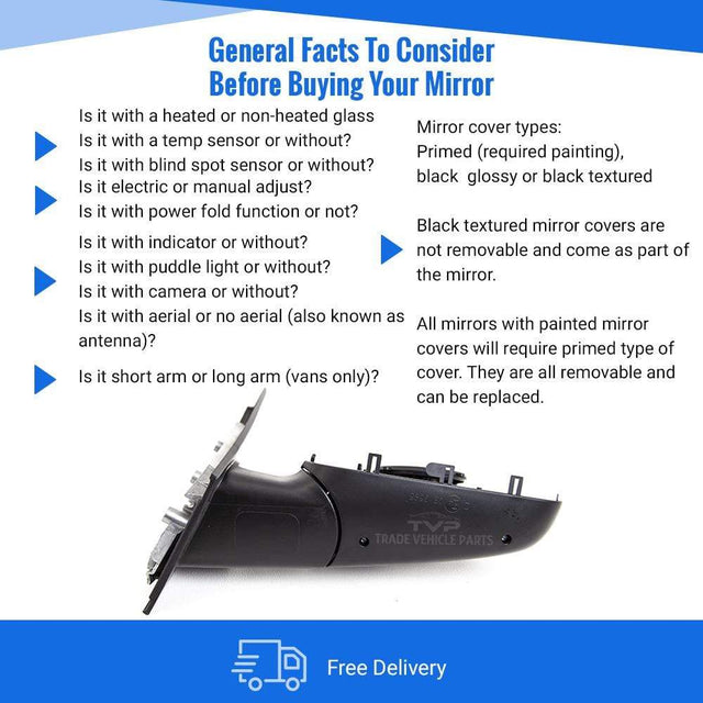 Fits VW Caddy 2004-2015 Door Wing Mirror Manual Primed Driver Side No Aerial