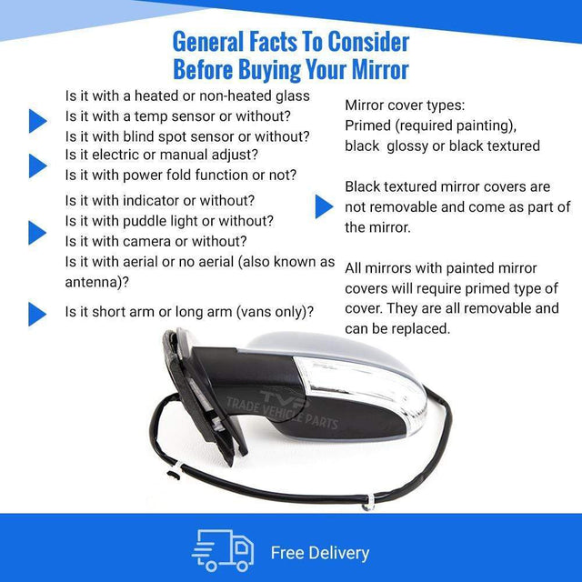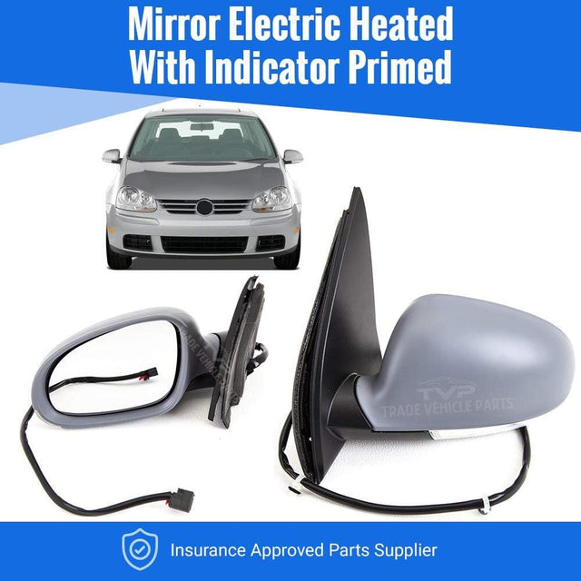 Fits VW Golf Mk5 2004-2008 Door Wing Mirror Electric Heated With Indicator Primed Passenger Side