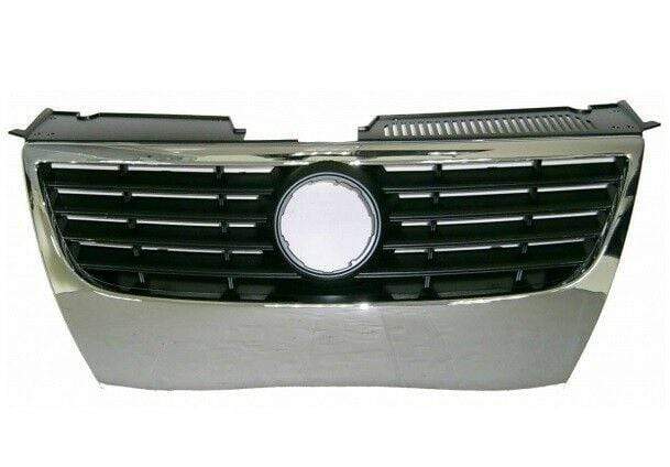 VW Passat B6 3C 2005-2010 Main Centre Front Bumper Grille Chrome Frame & Black Trims 130Mm Small Badge