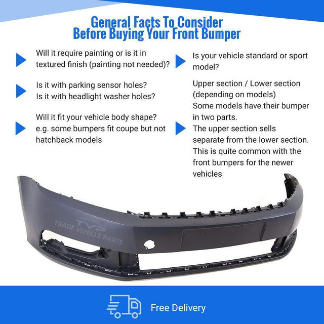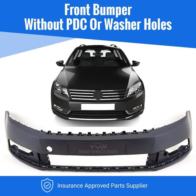 Fits VW Passat B7 2011-2014 Front Bumper Primed No Washer Or Pdc Holes