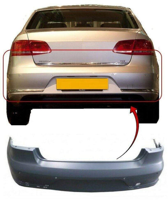 Fits VW Passat Saloon 2011-2014 Rear Bumper 4 Door Only Primed With Sensor And Moulding Holes
