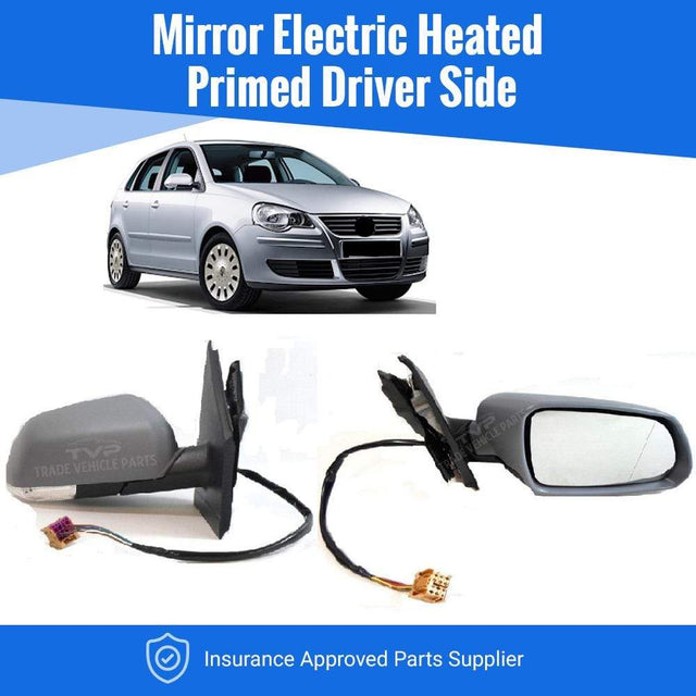 Fits VW Polo 2005-2009 Door Wing Mirror Electric Heated Primed Driver Side