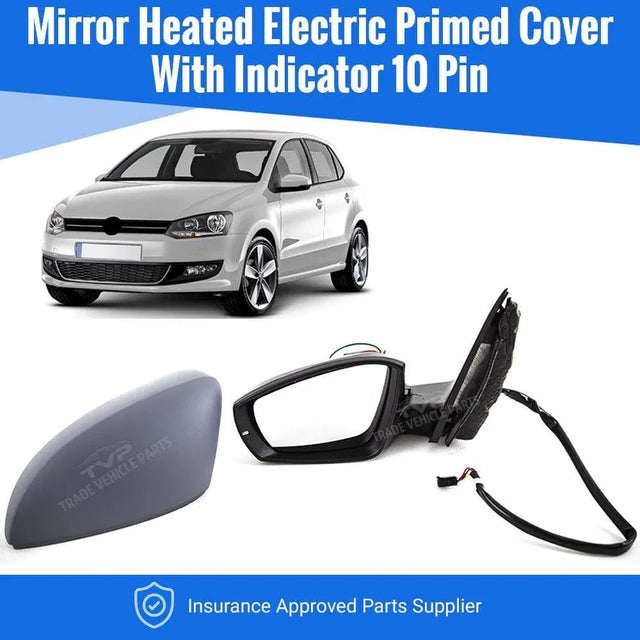 Fits VW Polo 2009-2014 Door Wing Mirror Heated Electric Primed Indicator Left 10 Pin