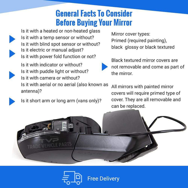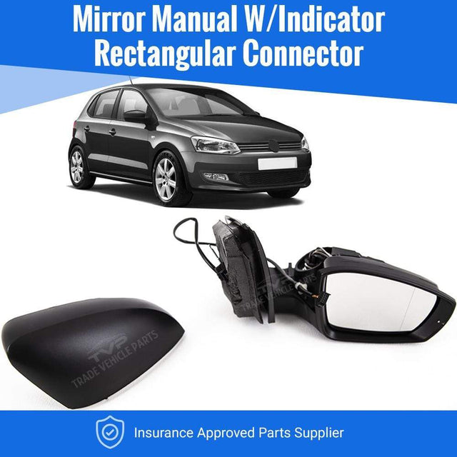 Fits VW Polo 2009-2014 Door Wing Mirror Manual With Indicator Angular Connector Driver Side