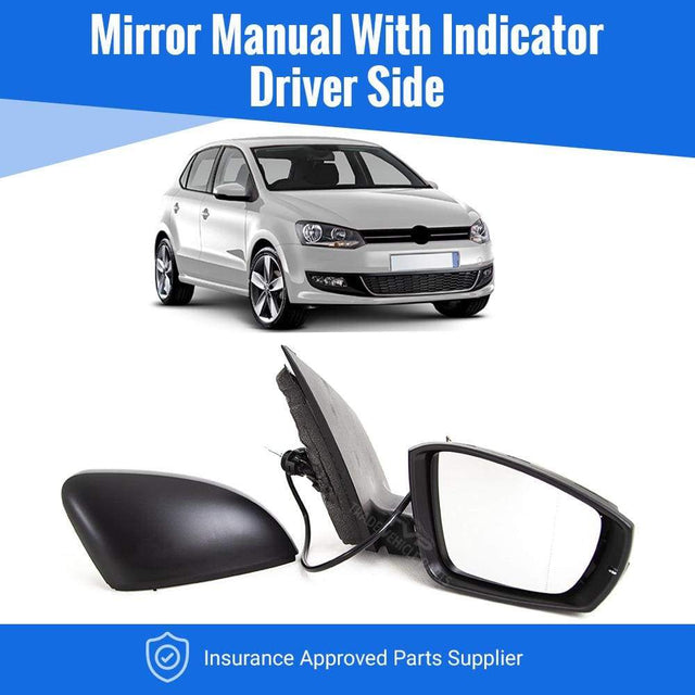 VW Polo 2009-2014 Door Wing Mirror Manual With Indicator Driver Side