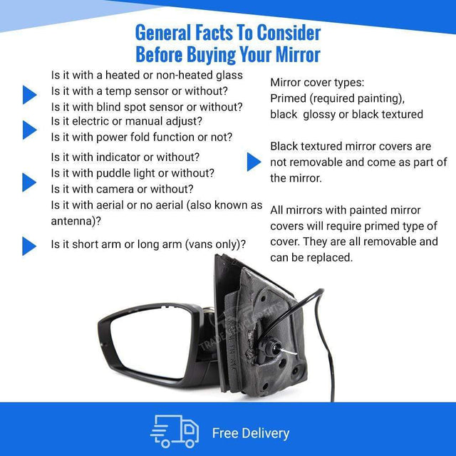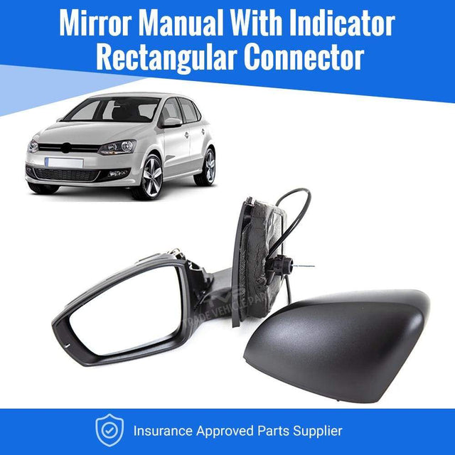 Fits VW Polo 2009-2014 Door Wing Mirror Manual With Indicator Black Passenger Side