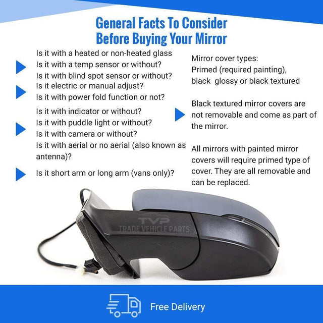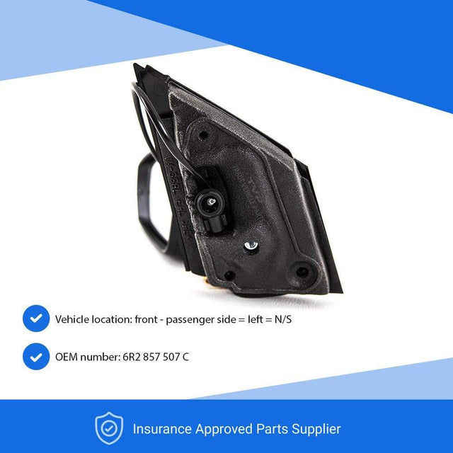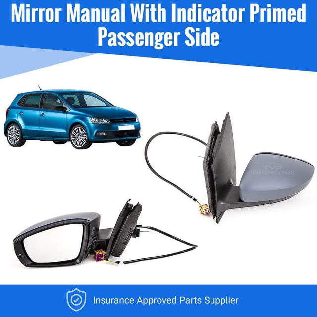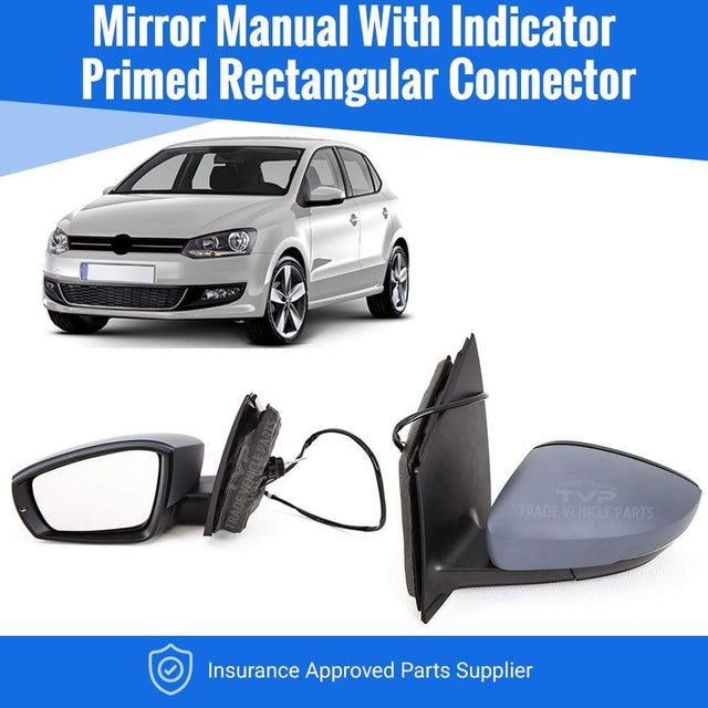 Fits VW Polo 2009-2014 Door Wing Mirror Manual With Indicator Primed Cover Square Connector Passenger Side