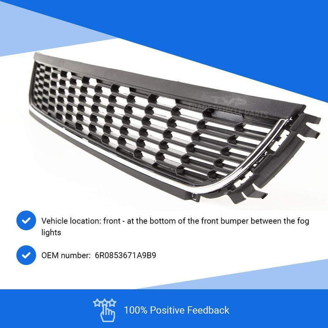 Fits VW Polo 2009-2014 Front Bumper Grille Centre Lower With Chrome Moulding Trim