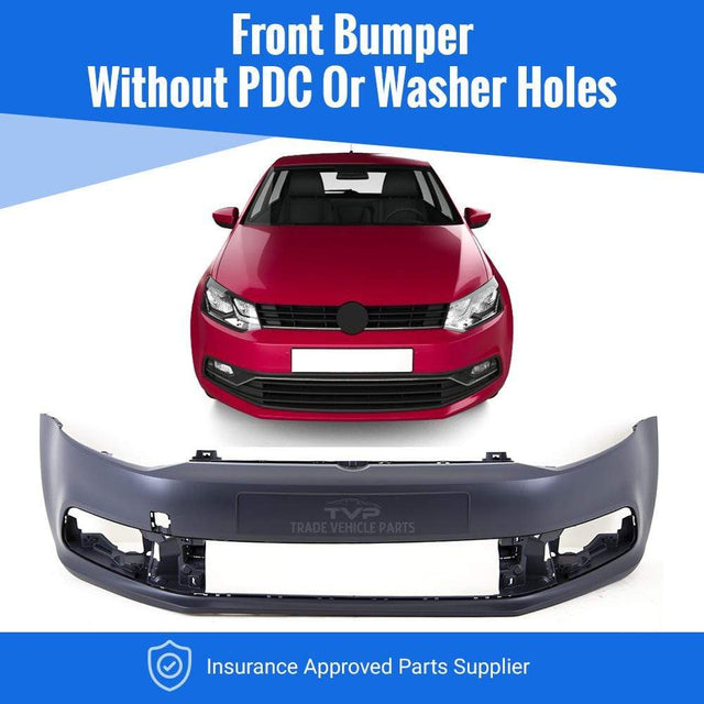 Fits VW Polo 2014-2017 Front Bumper Primed No Pdc Or Washer Hole