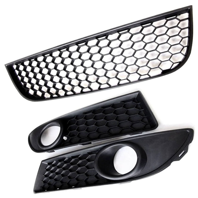 Fits VW Polo Gti 2005-2009 Front Bumper Lower Grille & Pair Fog Grilles Honeycomb