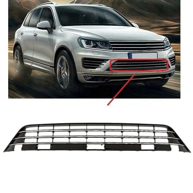 Fits VW Touareg R -Line 2014-2018 Front Lower Centre Bumper Grille Black With Chrome