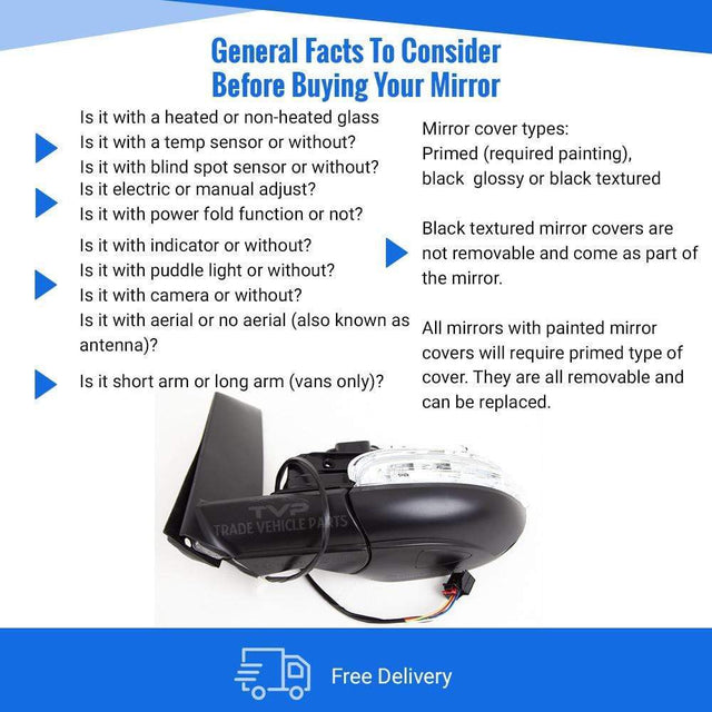 Fits VW Touran 2010-2015 Door Wing Mirror Electric Heated Primed Passenger Side