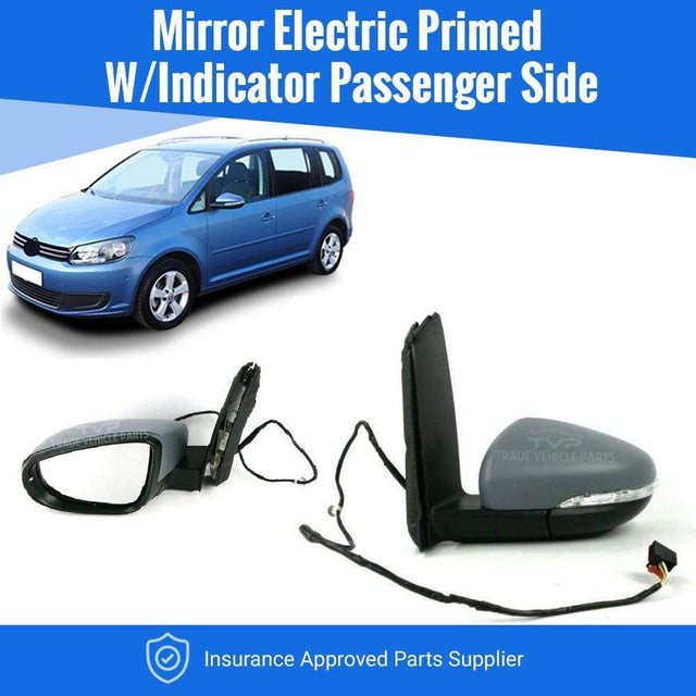 VW Touran 2010-2015 Door Wing Mirror Electric Heated Primed Passenger Side