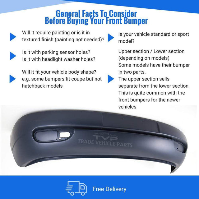Fits VW Transporter T4 Caravelle 1997-2004 Front Bumper Primed No Fog Hole Long Nose