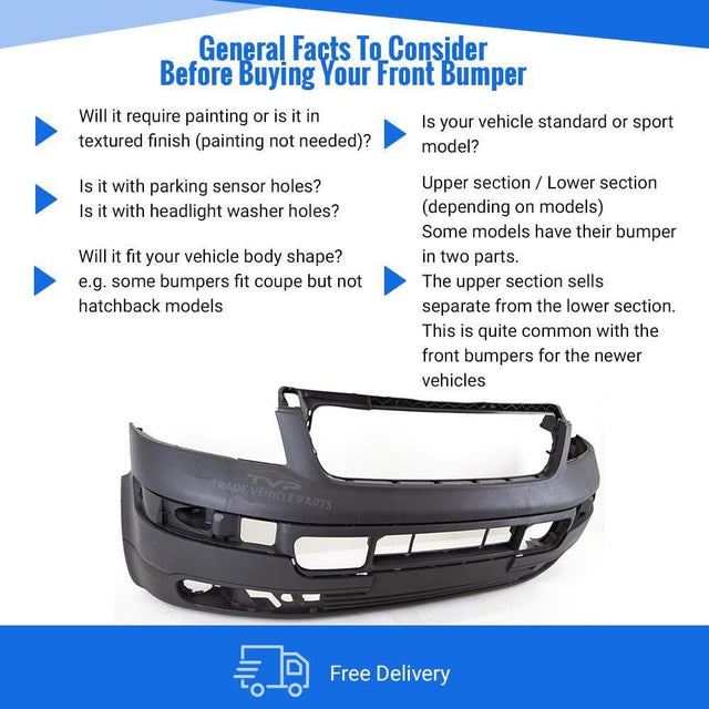 Fits VW Transporter T5 2004-2009 Front Bumper Dark Grey Textured No Pdc Or Washer Holes