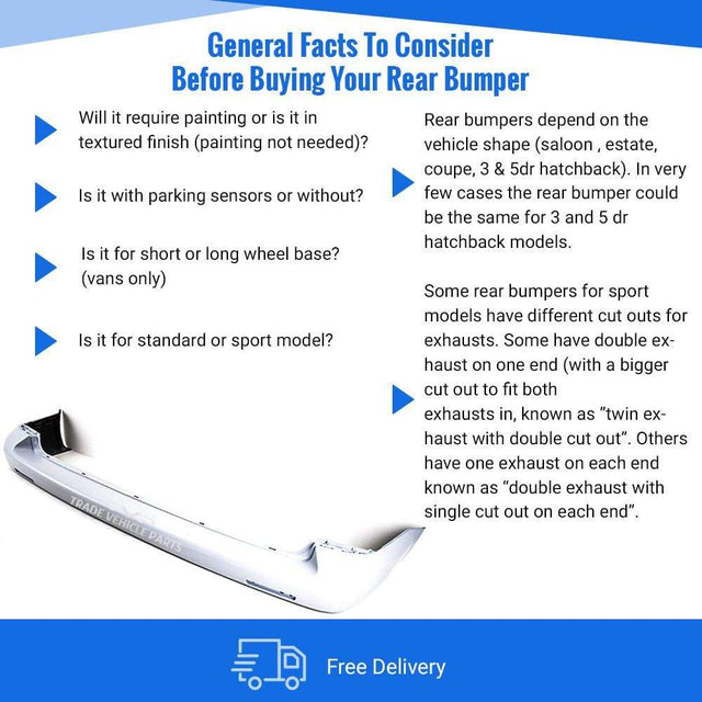 Fits VW Transporter T5 2004-2012 Rear Bumper Primed No Pdc Holes