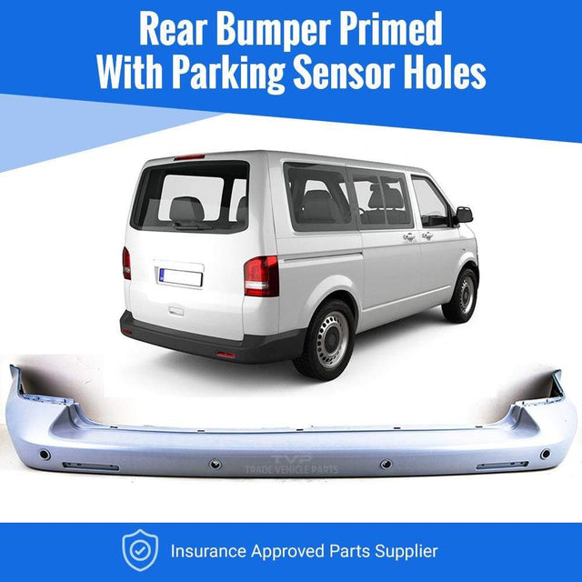Fits VW Transporter T5 2004-2012 Rear Bumper Primed Smooth With Parking Sensor Holes